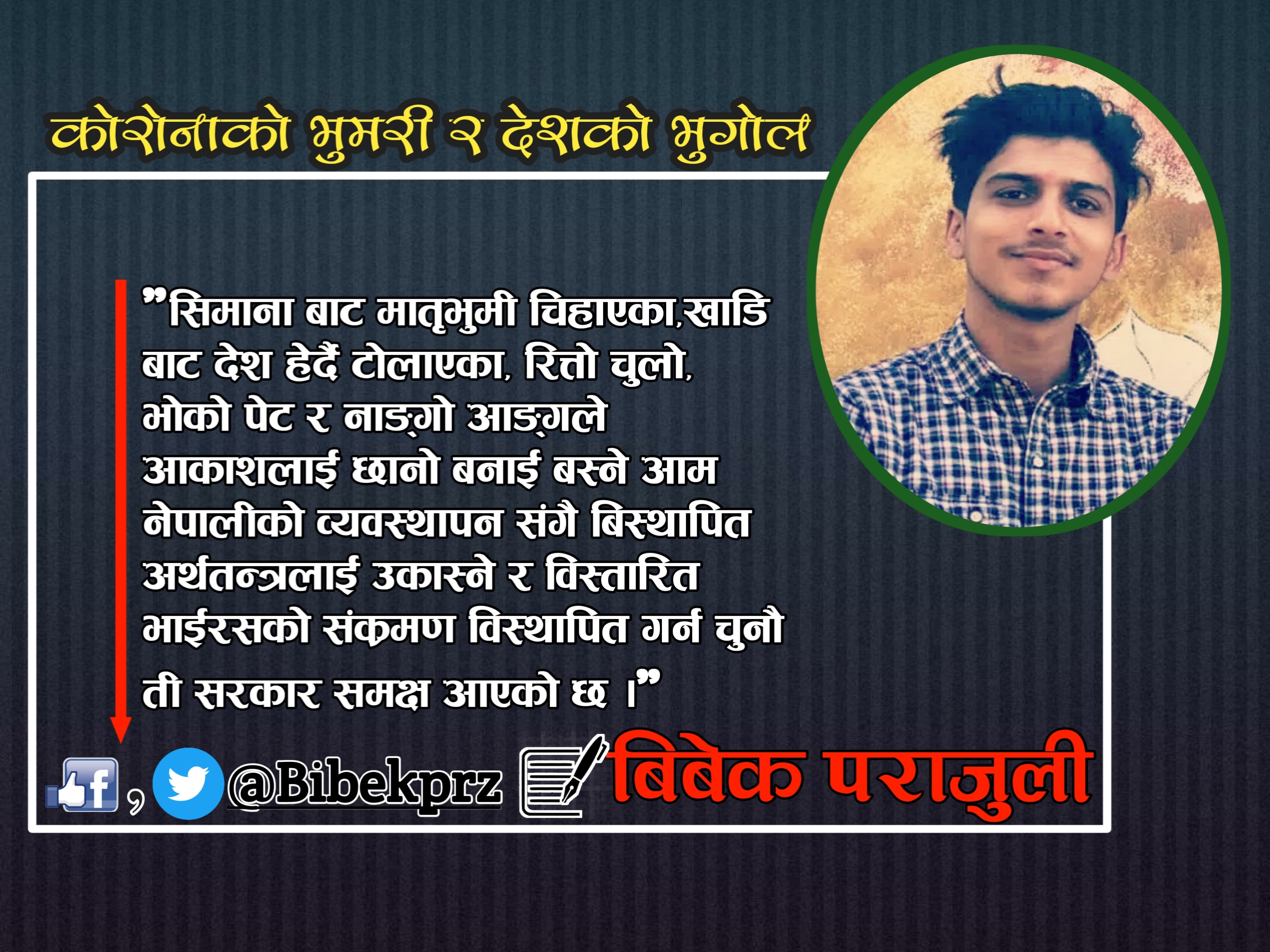 “सिमाना बाट मातृभुमी चिहाएका,खाडि बाट देश हेर्दै टोलाएका, रित्तो चुलो, भोको पेट र नाङ्गो आङ्गले आकाशलाई छानो बनाई बस्ने आम नेपालीको व्यवस्थापन संगै बिस्थापित अर्थतन्त्रलाई उकास्ने र विस्तारित भाईरसको संक्रमण विस्थापित गर्न चुनौती सरकार समक्ष आएको छ ।”